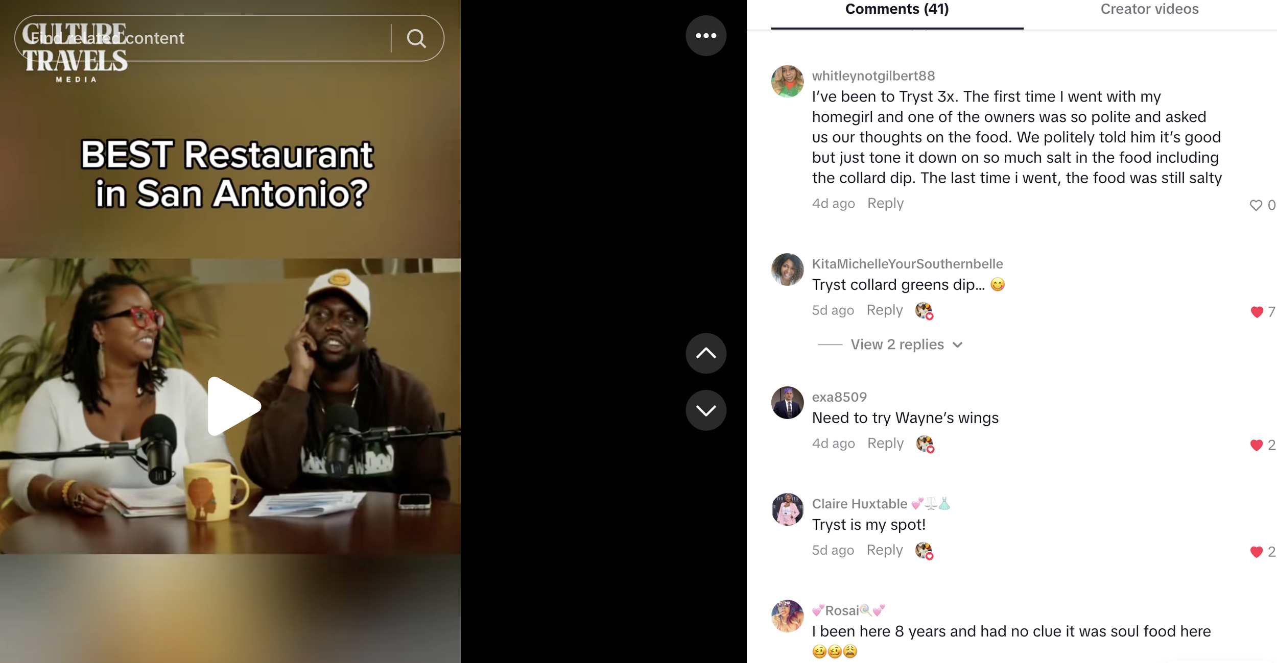 When we mentioned a few local favorites — J's Eatery, D&N Soul Food, and Snow Island — they were already taking notes. "Drop them in the comments," Tamela said, inviting the San Antonio community to share their recommendations. "David and Tamela may see it and y'all may give them a recommendation for where they want to go and eat." They also loved their recent visit to Tryst, calling the lamb chops "amazing" and praising the whole experience. "The whole facility was really, really nice," Tamela said. "I was very proud of them for what they set up for us."