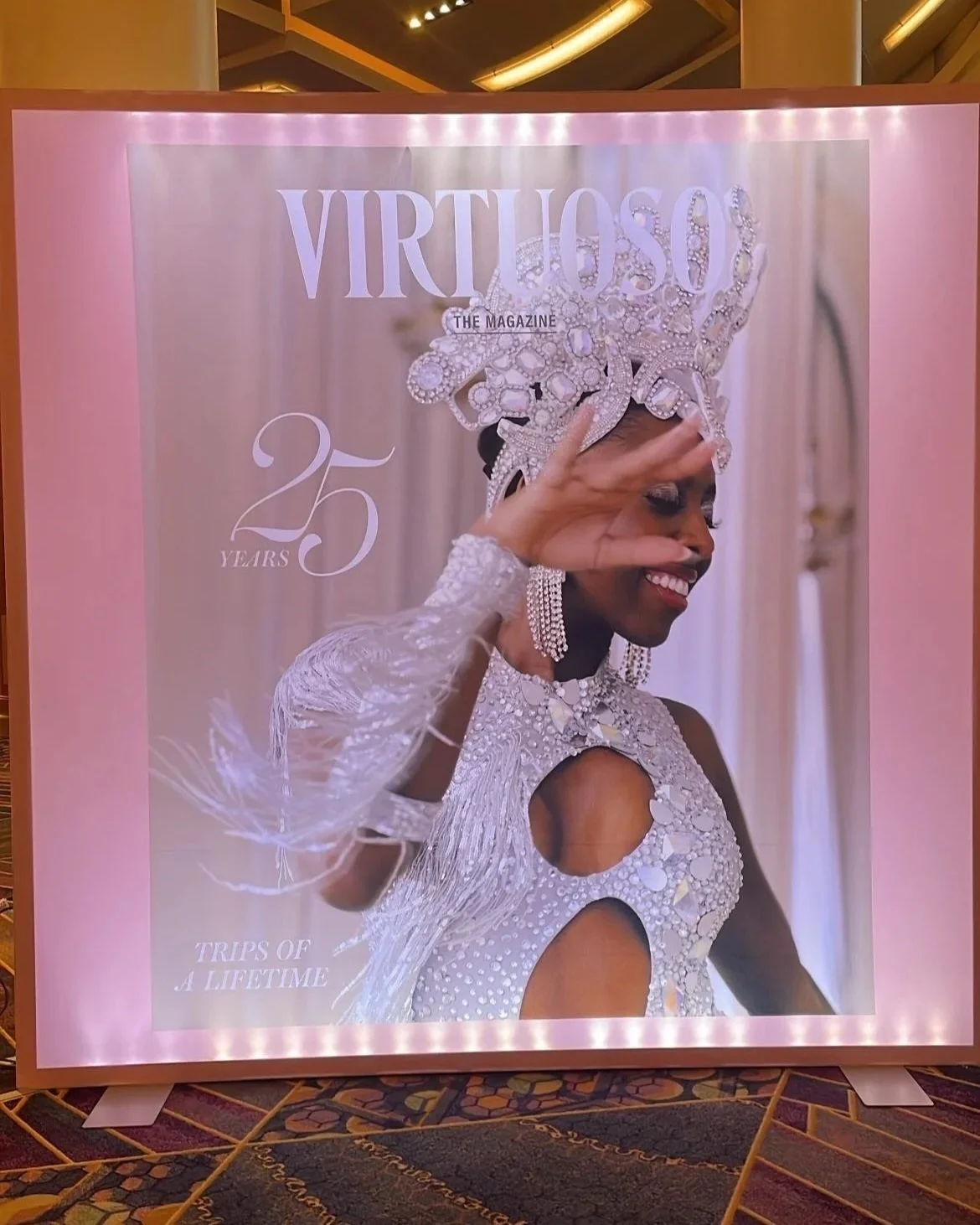 From the moment I saw a stunning illuminated display of a magazine cover featuring a Black woman adorned in a dazzling, bejeweled headpiece and crystal-embellished gown. I was struck by her elegance, her smile, and prominence. She was a pleasant surprise as the first face I saw when I arrived at Virtuoso Travel Week. And it was the start of what would be an unforgettable experience at Virtuoso. The lobby, home to the magazine cover, was buzzing with travel advisors, CEOs and executives of tourism boards, luxury hotel chains, cruise lines, and expedition companies—ready to make new business, share a company story, or strengthen existing partnerships. Some were dressed for their first meeting, and others, like me, fresh from the airport with luggage in hand, were scoping out the scene and trying to find my way around. Attentive Virtuoso staff noticed my lost look and quickly jumped in to offer assistance, setting the tone for the days ahead.
